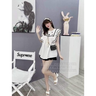 Đầm BẦU Babydol Ba Tầng Cổ Vuông Phối Viền Sang Chảnh