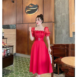 ĐẦM XÒE VOAN DỰ TIỆC CỔ TIM DỄ THƯƠNG,KIỂU DÁNG THỜI TRANG PHÙ HỢP MỌI LỨA TUỔI