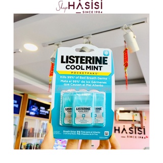 MIẾNG NGẬM THƠM MIỆNG LISTERINE Cool Mint Pocketpaks Breath Strips (3 hộp x 24 miếng xanh ngọc)