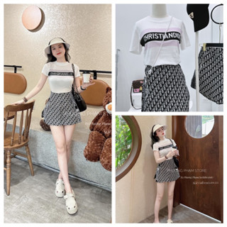 [ 𝐅𝐑𝐄𝐄 𝐒𝐇𝐈𝐏 ] Sét áo váy Dior Áo giấy mongtoghi mặc cực mát Hình in bệt, form ôm body Mix chân váy bò dệt QC sịn đẹp