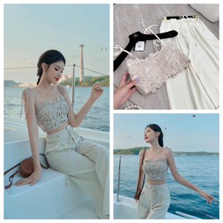 [ 𝐅𝐑𝐄𝐄 𝐒𝐇𝐈𝐏 ] Set áo 2 dây ren hoa mix quần suông siêu phẩm Áo 2 dây ren hoa QC cao cấp chuẩn mâu, có đệm ngực, chun m