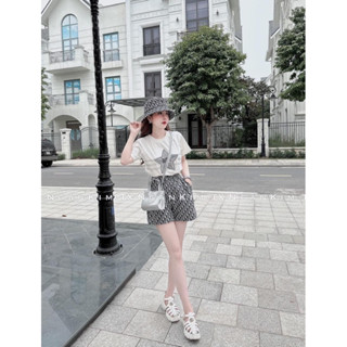 [ 𝐅𝐑𝐄𝐄 𝐒𝐇𝐈𝐏 ] Set áo xốp dập nổi thỏ balen mix quần sooc Dior Áo xốp dập nổi QC cao cấp, hoạ tiết dior chuẩn mẫu