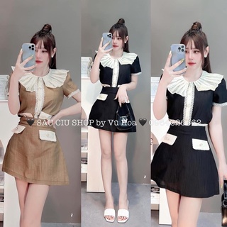 [ 𝐅𝐑𝐄𝐄 𝐒𝐇𝐈𝐏 ] SET CHÂN VÁY CROPTOP SƠ MI NẮP TÚI MIX CHÂN VÁY NGẮN XÒE