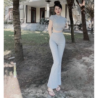Set áo tay dài croptop mix quần xoè ( ảnh thật trải sàn )