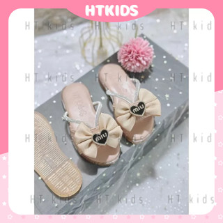 Dép cho bé gái (phom to) dép dây đá tim M.i.u da mềm đế chống trơn |HT KIDS|