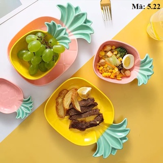 Bộ Bát Đĩa Gốm Sứ Hình Quả Dứa Vàng, Bát Hình Dứa Decor Siêu Xinh Chịu Nhiệt Cao