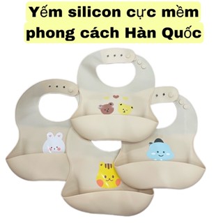 Yếm silicon cho bé ăn dặm phong cách Hàn Quốc, thiết kế mỏng nhẹ ở cổ. Hoạ tiết Gấu/khủng long/hổ