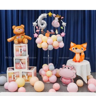Bóng Sinh Nhật Tông Nâu Tây Retro Trang Trí Cho Bé Thích Con Thỏ, Nai, Nhím, Hổ, Cáo, Hà Mã
