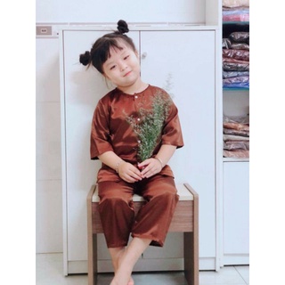 Yếm nâu kèm mấn bé gái chất lụa mềm mát size 7 - 30ky