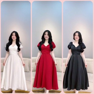 [SHOP TÁO ĐỎ BIGSIZE 50kg-90kg] Đầm bigsize nữ tay phồng dáng dài 8686 - màu đỏ, đen, trắng