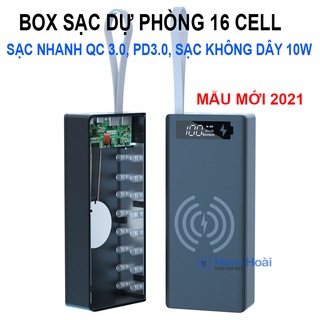 Box sạc dự phòng 16 cell sạc nhanh PD3.0, QC3.0 bản cao cấp chống ngược cực (không gồm pin)