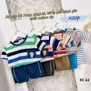 Bộ cộc XOOP cotton vân gỗ lé in chữ boar cho bé trai bé gái (11-21kg) BC75,Đồ bộ thời trang quần áo trẻ em mặc nhà