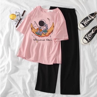 [RẺ VÔ ĐỊCH] Sét bộ áo phông Phi Hành Gia mặt trăng câu cá kèm quần ống rộng dáng dài