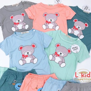 Áo cộc tay thun lạnh hình gấu cài vai cho bé trai bé gái