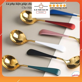 Thìa Inox mạ vàng cán dài nhiều mầu không dỉ sang trọng