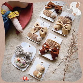 🅷.🄴🅅🄰🄽 Set 2 chiếc kẹp tóc nơ buộc tóc cho bé gái, bọc nỉ êm ái, phong cách Hàn Quốc, tông màu ấm áp.