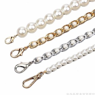 Dây Đeo Túi Xách Bằng Kim Loại Màu Vàng / Bạc Đính Hạt Ngọc Trai Đen Sang Trọng
