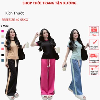 Sét bộ nữ thun gân tay ngắn đồ bộ thun gân phối quần dài ống suông bộ đồ nữ thun gân có 6 màu sang chảnh