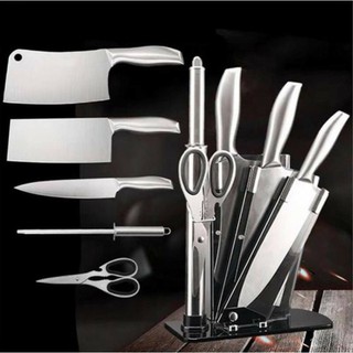Bộ Dao Nhật 6 Món Inox Nhà Bếp Nguyên Khối Cao Cấp Kèm Khay Đựng