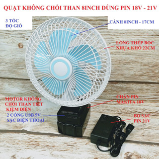SV Quạt 8inch không chổi than cánh nhựa dùng pin 18V - 21V (chung chân pin Makita)