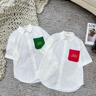 Áo sơ mi nữ tay ngắn túi phối màu mẫu siêu hit