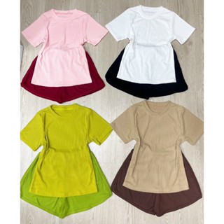 Sét bộ áo thun tay ngắn cổ tròn phối viền & chân váy thun chữ a cột dây siêu xinh(B.C)