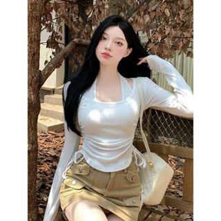 Áo thun tay dài cổ yếm 2 lốp rút dây 2 bên phong cách hàn quốc mẫu cực hot(A15