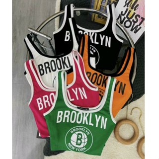 Áo thun body croptop 3 lỗ viền in chữ (BROOKLYN) phong cách thể thao tươi trẻ