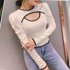 Áo thun tay dài croptop khoét ngực chạy viền (A15