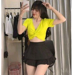 Áo thun tay ngắn croptop kiểu xoắn eo cực hot(B.C