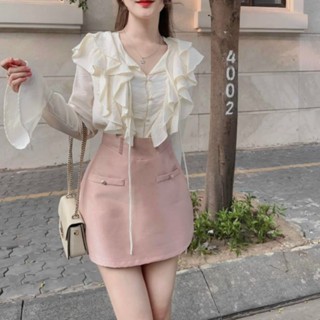 Áo sơ mi kiểu tay dài xòe phối bèo siêu xinh phong cách hQ
