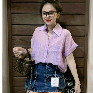 Áo sơ mi đũi giấy tay ngắn 2 túi full màu sắc cực hot(A15)