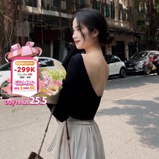Áo thun tay dài YUNA ôm body hở lưng siêu tôn dáng siêu chếch chi, thời trang nữ YUNA