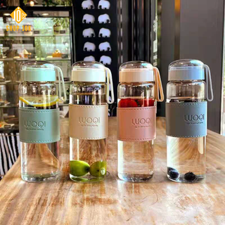 Bình nước thuỷ tinh chịu nhiệt, bình đựng nước cao cấp có dây xách màu sắc dễ thương 480ml- Shop10k