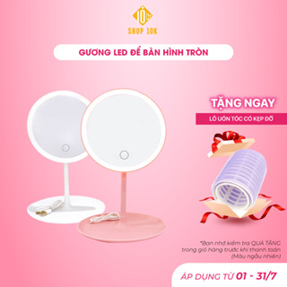 Gương để bàn trang điểm SHOP10K, Gương đèn led cảm ứng mẫu tròn SP004014