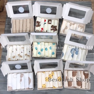 (40 mẫu )Khăn sữa nhăn cao cấp hộp 6 cái kích cỡ 32x32cm.Khăn sữa cho bé 100% sợi xô muslin