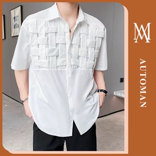 Áo sơ mi nam ngắn tay hoạ tiết thêu thời thượng phong cách Hàn Quốc chất không nhăn cao cấp AUTOMAN A71
