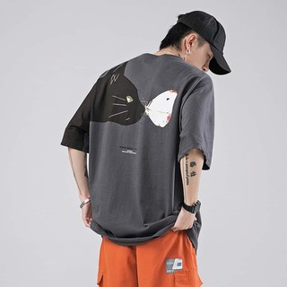 Áo thun nam tay lỡ phản quang chất mềm mịn y ảnh in hình mèo