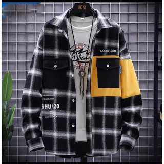 Áo khoác sơ mi caro UNISEX tay dài thời trang phong cách Hàn Quốc