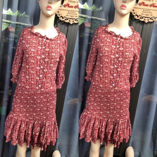 Đầm suông tay lỡ màu hồng họa tiết ren hoa combo