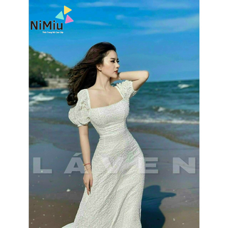 Đầm Nữ Thời Trang Mặc Đi Tiệc, Đầm Nữ Maxi Chifon Có Mút Vổ Vuông Tay Phồng Ngắn Đi Tiệc Sang Chảnh