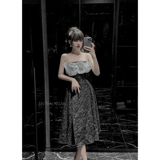 Đầm thời trang nữ mặc tiệc sang chảnh chất tapta cao cấp có mút ngực 2 dây đính hoa