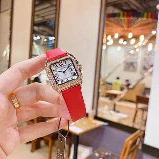 Đồng hồ nữ thời trang mặt vuông dây da đỏ .