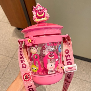Disney Bình Nước Thông Minh Có Ống Hút Họa Tiết Gấu Và Dâu Tây Dễ Thương Cấp Thực Phẩm 316