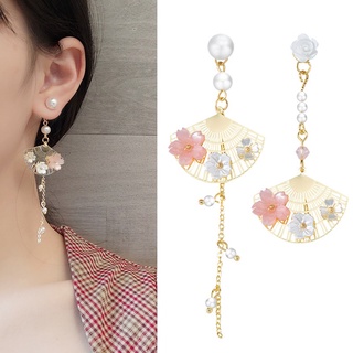 Khuyên Tai Tua Rua Hình Hoa Đính Đá Ngọc Trai Phong Cách Thời Trang Hàn Quốc