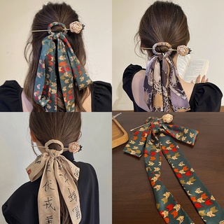Kẹp Tóc Đính Nơ In Họa Tiết Hoa Phong Cách Truyền Thống Mới