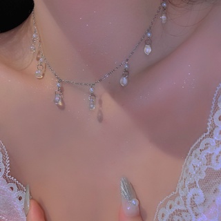 Dây Chuyền Đính Đá Và Ngọc Trai Nhân Tạo Phong Cách Hàn Quốc Mới