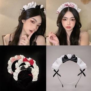 Băng đô cài tóc phối nơ ren màu đen phong cách retro Nhật Bản dành cho nữ