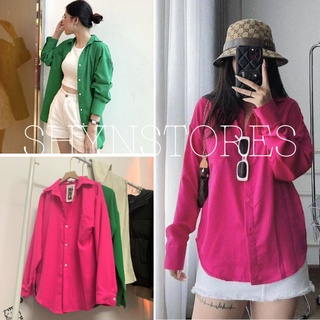 Áo sơ mi đũi dài tay Shynstores form rộng vintage màu xanh lam siêu hot