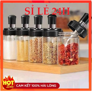 Bộ 4 Lọ Gia Vị Có Thìa Muỗng Nhựa Việt Nhật Hũ Đựng Gia Vị Có Nắp Đậy VN2939
